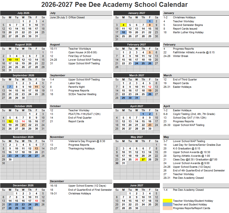 Printable 2025-26 Academic Calendar