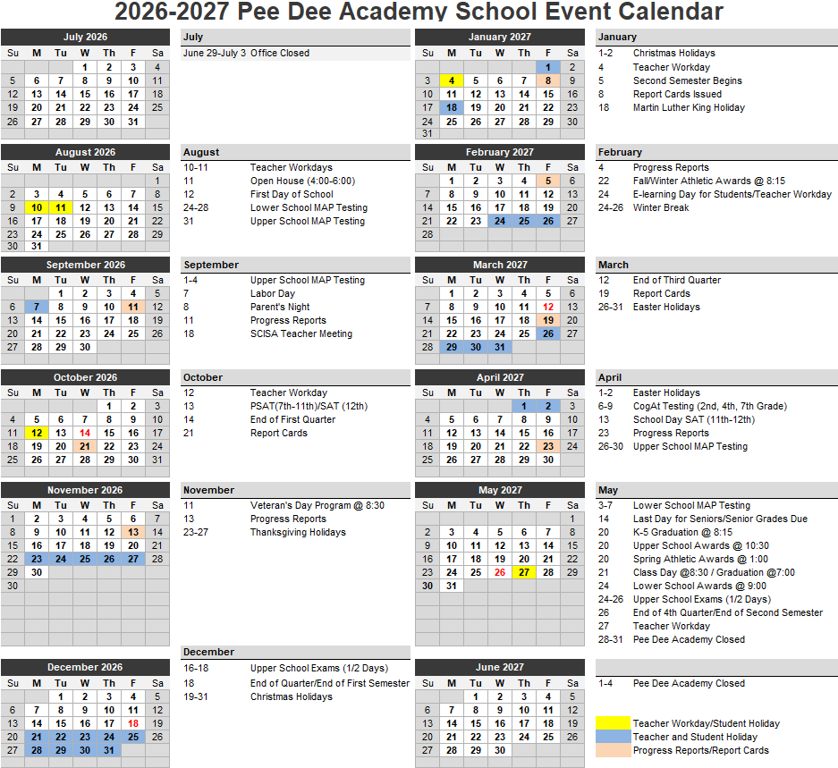 Printable 2025-26 Academic Calendar
